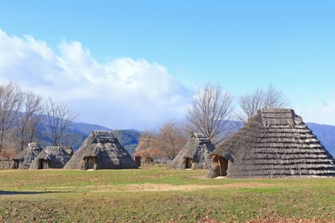 シオジリ市の国立歴史的な敷地であるヒレイド・遺跡は、Jr ChuoのメインラインShiojiri駅の南西約2 kmの農業地域に位置しています。これは、日本の3つの偉大な考古学的サイトの1つと考えられています。