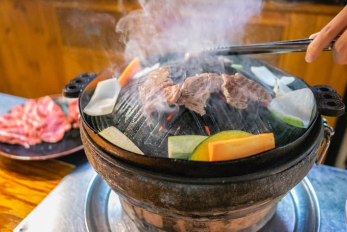 モンゴルの征服者チンギス・ハーンの音訳を使用したこの人気の羊肉料理は、羊肉がモンゴルの兵士にとって好物の肉であると考えられていたため、この名前が付けられたと言われています。日本のほとんどの地域とは異なり、北海道では長年にわたって唯一の羊牧場があったことが主な理由で、羊肉が肉としてよく食べられています。ジンギスカンは通常、フライパンやグリルでお客様自身が調理します。肉は真ん中で調理され、調理中においしい脂の滴りを「キャッチ」するために、端の周りにさまざまな野菜が配置されます。