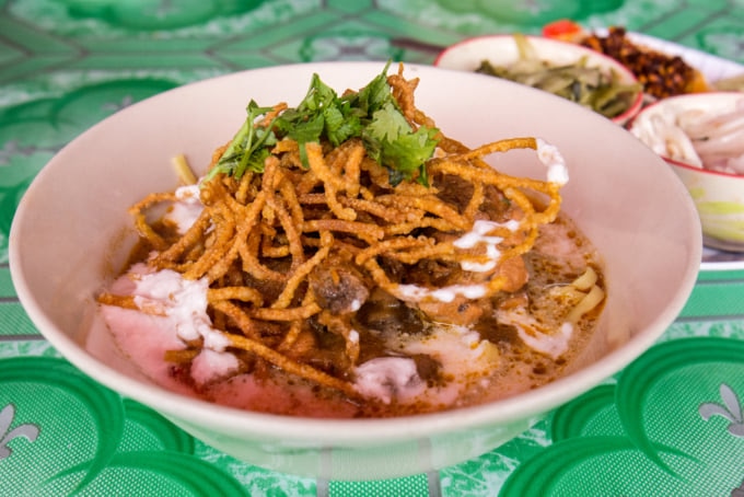 この美しい地域を旅行する外国人に一番人気のカオソーイは、おいしいカレーソースで作られた麺料理です。シンガポール、マレーシア、インドネシアで有名なラクサとよく比較されますが、まったく異なります。タイ北部バージョンでは、茹でた卵麺と揚げた卵麺を混ぜて使用し、カリカリ感を保つために後者が上に置かれることがよくあります。カレーソースはタイのマッサマンカレーに似ていますが、よりスープのようで、エシャロット、ライムウェッジ、高菜のピクルスと組み合わせられ、通常は牛肉または鶏肉と一緒に出されます。一杯食べたら止まらなくなります。タイ北部には、誘惑に駆られるカオソーイの専門店があちこちにあります。