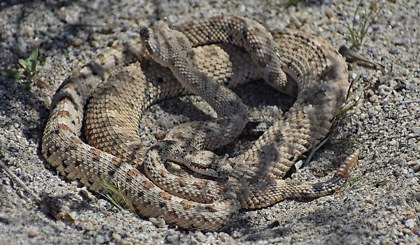 モハーベ湖も別の貯水池ですが、ミード湖よりもはるかに小さいです。 26,500 エーカーにまたがるこれら 2 つの湖はつながっており、モハーベ湖はより大きな湖の南にあります。このため、さまざまなガラガラヘビを含め、同じ種のヘビのほとんどがこの湖を生息地としています。ここでは、サイドワインダーガラガラヘビが遭遇する可能性があります。ただし、見た目ほど怖いものではありません。これらのヘビは、ほとんどのガラガラヘビよりも小さく、体長は 17 ~ 31.5 インチ (43 ~ 80 cm) に達します。つまり、攻撃力も小さいことを意味します。実際、ほとんどのガラガラ動物よりも腺が小さく、毒も弱いため、死亡することはまれで、症状は痛み、腫れ、打撲程度に限定されることが多いです。とはいえ、薄茶色の模様と竜骨状の背鱗により、砂漠の地形に溶け込むことができるため、近づくまで気づかれないこともよくあります。