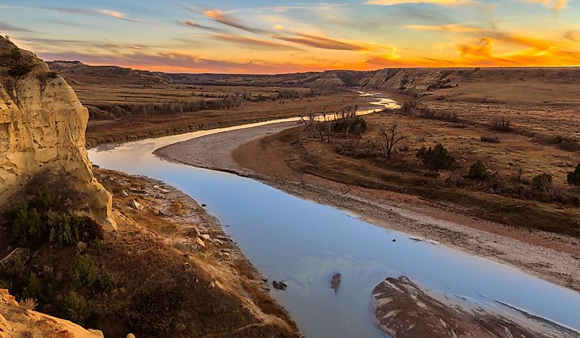ノースダコタ州セオドア・ルーズベルト国立公園を貫くリトル・ミズーリ川