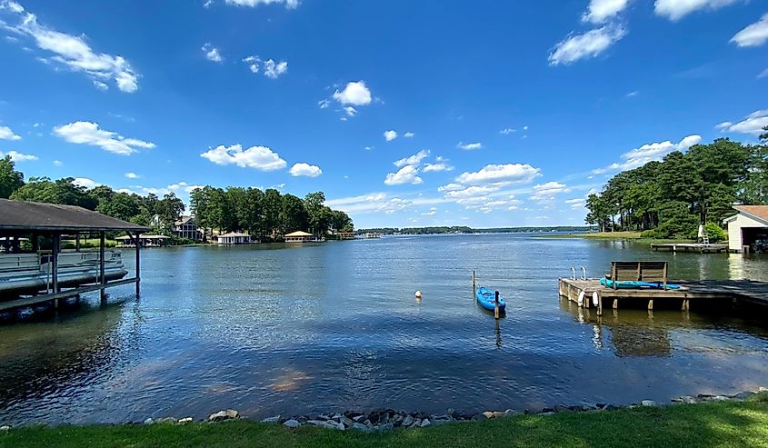 スミス マウンテン レイクは、バージニア州中央部のロアノーク近くにある風光明媚な貯水池です。表面積は 32 平方マイル (83 平方キロメートル)、岸辺の長さは約 500 マイル (804 km) で、この地域で最大の湖の 1 つです。ロアノーク川が流れ込んでおり、この地域で最高のレクリエーションスポットの 1 つです。ボート、水上スキー、セーリングなどのさまざまなアクティビティを楽しむために世界中から人々が集まります。水の中の湖は生命に満ちており、縞模様のバスなどの魚種が生息しており、多くのプロの釣りトーナメントを盛り上げてきました。