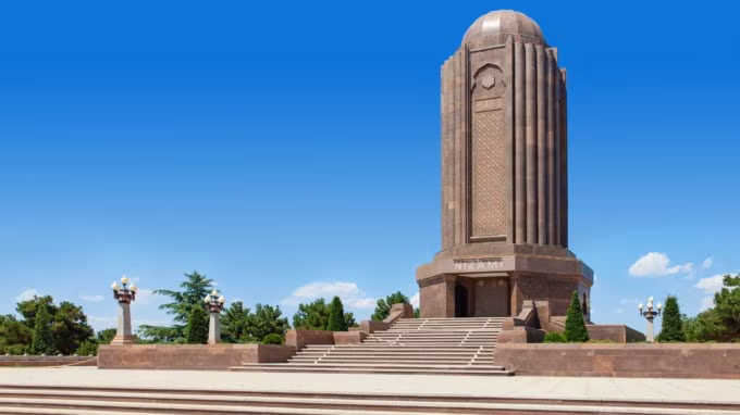 国道をまたぐ広大な土地に円筒形の記念碑がそびえ立ち、その側面には彼の叙事詩を記念する金属彫刻が置かれている。この地域の著名な歴史上の人物であるニザミの霊廟は、地元の人々が頻繁に訪れる人気のスポットです。
