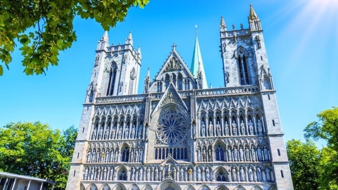 大聖堂の建設は 1070 年に始まり、2001 年に完成しました。堅固な石造りのバロック様式で建てられたノルウェー最大の大聖堂です。正面ファサードには、ひときわ目立つキリスト像を含む54体の彫像があり、訪れる人々に強烈な印象を与えます。大聖堂は常に観光客や巡礼者で賑わっており、トロンハイムで必見の観光スポットとなっています。