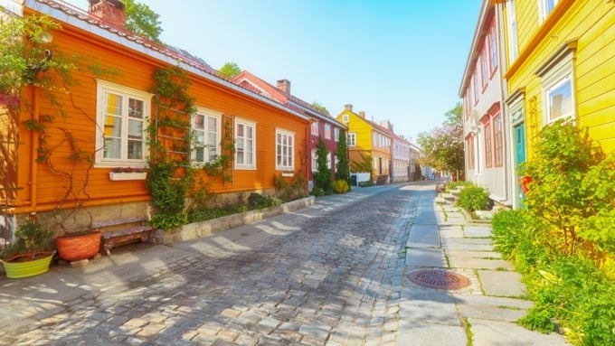 200 年以上前に建てられた川岸に並ぶカラフルな倉庫からは、トロンハイムで最も美しい景色の 1 つが楽しめます。多くの観光客が門をくぐり、典型的な北欧の風景を捉えた倉庫の写真撮影を楽しんでいます。