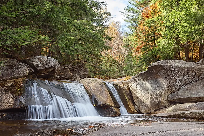 メイン州のマフーサック山脈に位置するグラフトン ノッチ パークでは、ギザギザの峰々、深い渓谷、流れ落ちる滝が景観を支配しています。バックカントリー ハイカー、バードウォッチャー、クロスカントリー スキーヤー、スノーモービルの楽園であるこのユニークな公園は、メイン州の素晴らしい屋外遊び場を満喫するのに最適な場所の 1 つです。約 12,000 年前の氷河活動によって形成された過去への窓でもあります。氷河が後退すると、深い裂け目、尾根、渓谷、谷が残り、この公園は地質学的に重要な地域となっています。