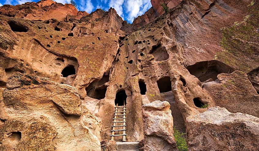 ロス アラモスの近くにあるバンデリア国定公園は、かつて先祖代々のプエブロ族が住んでいた 33,000 エーカー以上の険しい渓谷と乾燥したメサ地形を管理しています。考古学的証拠は、この地域での居住が 11,000 年以上前に遡ることを示しており、最も注目すべき遺跡は西暦 1150 年から 1600 年の間に繁栄したコミュニティからのものです。