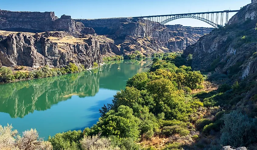 アイダホ州ツインフォールズのスネーク川にかかるペリーヌ橋