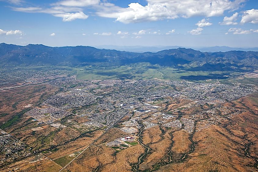 メキシコからのアリゾナ州ダグラスの国境検問所の航空写真、Eric O. Ledermann / Shutterstock.com経由