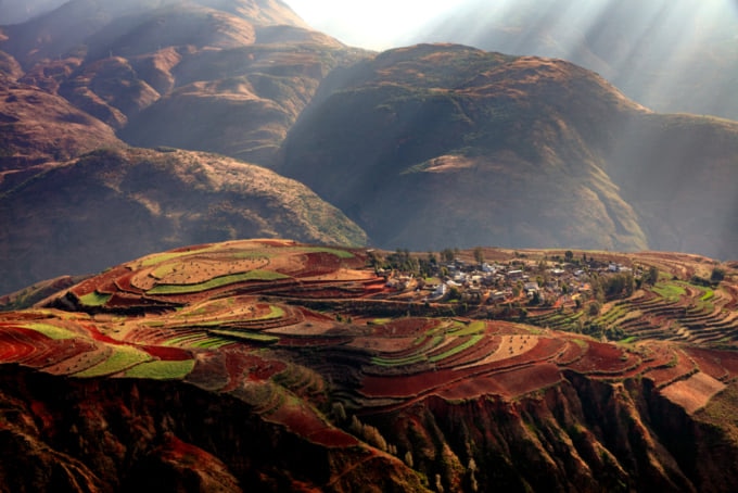 アジアで最も素晴らしい名所の 1 つである紅河は、おそらく世界で最も棚田の例でしょう。この水田はアイラオ山脈を越えて 16,603 ヘクタールにわたって広がり、地元の少数民族ハニ族によって数百年かけて造られました。特に夕方には、光がさまざまな角度で水面に輝き始め、さまざまな色に見えます。