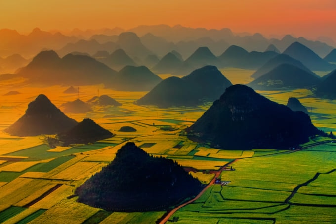 桂林にも同様に印象的な風景を見ようと観光客が集まりますが、雲南省の羅平では、同様に美しい景色にもかかわらず、それに比べて観光客の数はほとんどありません。しかし、羅平のユニークな点は、周囲に点在する濃い緑の丘や山と対照的な、鮮やかな黄色の菜の花畑にあります。早春に菜の花が咲き誇るので、最も見事な菜の花を見るには、2 月か 3 月に訪れるとよいでしょう。