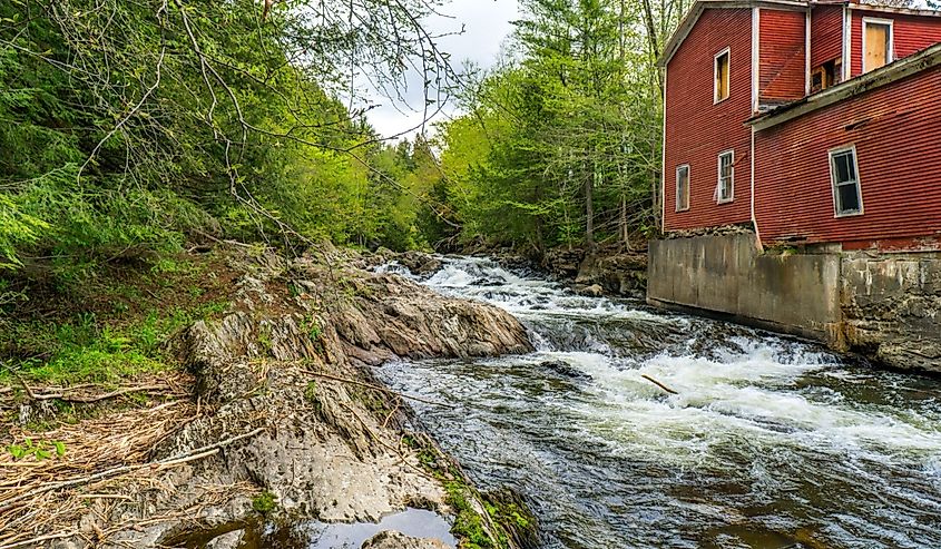 ギホン川はバーモント州ジョンソンにあるかつての発電所の隣を流れています。編集クレジット: Pernelle Voyage / Shutterstock.com