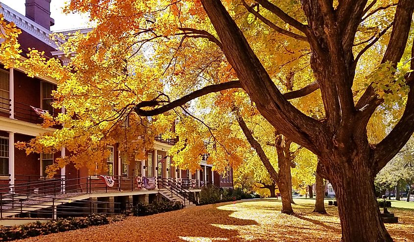 カンザス州フォート レブンワースの色鮮やかな紅葉。
