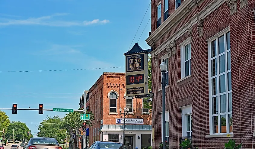 カンザス州エンポリアのダウンタウンにあるコマーシャルストリート。 Shutterstock 経由の画像クレジット マーク reinstein