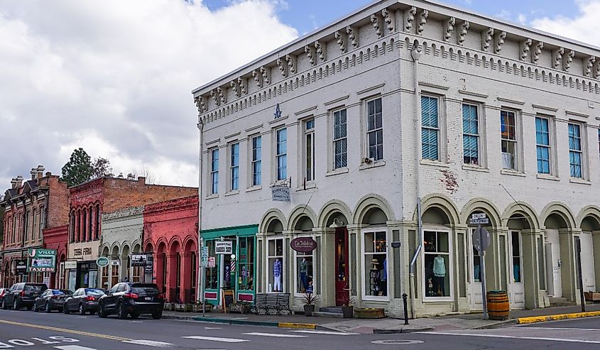 オレゴン州ジャクソンビルの歴史的な地区レンガ造りの建物のダウンタウン。 ShutterStock経由の画像クレジットUnderawesternsky