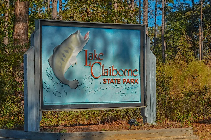 秋のルイジアナ州ホーマーにあるレイク・クレイボーン州立公園の標識。