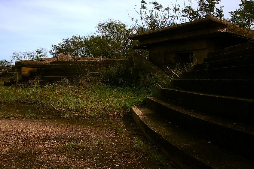 70 年代後半から 80 年代後半まで、この場所にはベラ アシュビーとして知られる精神的なコミュニティがありました。 2025 年、この要塞の敷地は私有地となり、依然としてハリケーン カトリーナとリタによる大きな被害を受けています。米西戦争当時のオリジナルのレンガ造りの要塞とコンクリート構造物だけが残っています。