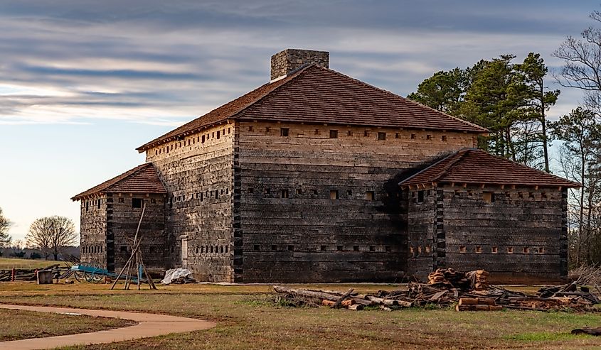 ステートビルのフォート ドブスは、植民地で唯一の常設の辺境要塞でした。 1755 年から 1756 年にかけて建設され、小規模な守備隊の基地および入植者の避難所として機能しました。 1760 年にチェロキー族の戦士のグループによって攻撃され、守備隊は若干の死傷者を出しながら砦を守りました。 1761 年までに砦はほとんど放棄され、1766 年までに廃墟と化しました。