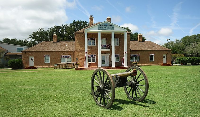 サウスポートにあるフォート ジョンストンは、スペインとフランスの潜在的な脅威からケープ フィア川を守るために 1749 年に建設された、ノースカロライナ州で最初に建てられた砦です。ガブリエル ジョンストン知事にちなんで名付けられ、フレンチ・インディアン戦争とアメリカ独立戦争で役割を果たしました。 1775 年、独立戦争初期に愛国軍が砦を焼き払った。その後再建され、南北戦争中や 19 世紀から 20 世紀初頭の信号所など、さまざまな軍事目的に使用されました。 2006 年に、この資産はサウスポート市に譲渡されました。