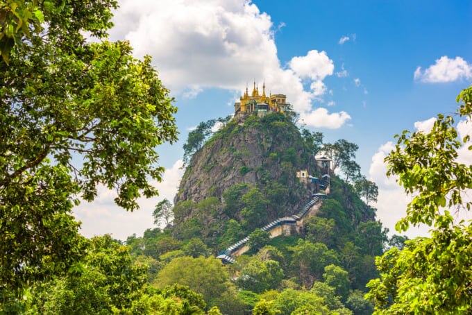 それは旧市街の古代の寺院の1つではないかもしれませんが、タウンカラトは地域を旅している間、まだ容認できません。この奇妙な山は、多くの地元の人々にとって神聖な場所であり、国の仏教徒にとって人気のある巡礼スポットです。バガンの古代のパゴダの海から車で車でわずか数時間です。非常にユニークな丘の上に建てられた非常にユニークな丘があり、周囲の景色の上から美しい景色を眺めることができます。