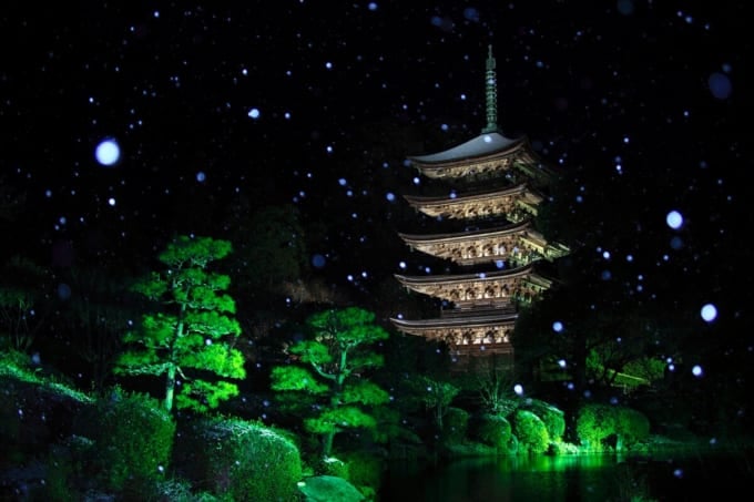 緑豊かな庭の中にあり、ルリコジ寺院の5階建てのパゴダは、ムロマチ時代の建築の傑作であり、国宝に指定されています。 Oueiの反乱の間に亡くなったOuchi Yoshihiroに敬意を表して建てられたこのパゴダは、洗練された中華文化の象徴です。