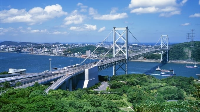 しばしば星と九州をつなぐ主動脈と呼ばれるカンモン橋は、1 kmにまたがる大規模な懸濁橋であり、山口県と福岡県の北華語を結びつけます。 1973年にオープンしたとき、それは当時アジアで最も長い橋でした。