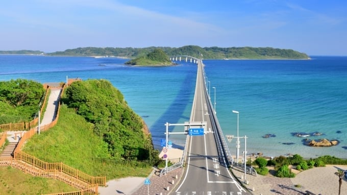クリスタルクリアブルー海にまたがる橋の上をスムーズに運転することを想像してください。想像しても素晴らしい気分ですね。多くの人々は、山口県の代表的な観光スポットである「津波橋」として知られるこの象徴的な橋の写真を見たことがあるかもしれません。橋の向こう側には、山口県の清海市の津波島があります。
