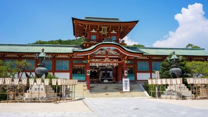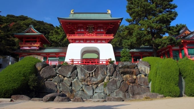 神社へのアプローチは、「センボン・トーリ」として知られる活気のある赤いトリゲートの長いラインを特徴としており、神の領域への招待のように感じる道を作り出しています。敷地には雄大な偉大な鳥もあり、これは必見の景色の良い神社であり、山口観光の忘れられないハイライトになっています。