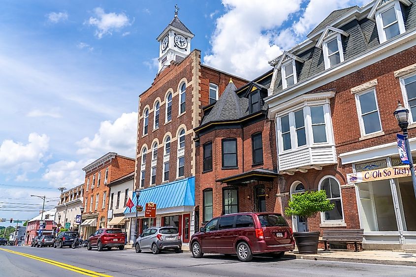 メリーランド州、歴史あるウィリアムスポートのダウンタウンにあるメインストリート沿いのビジネス。画像クレジット:Kyle J Little(Shutterstock経由)