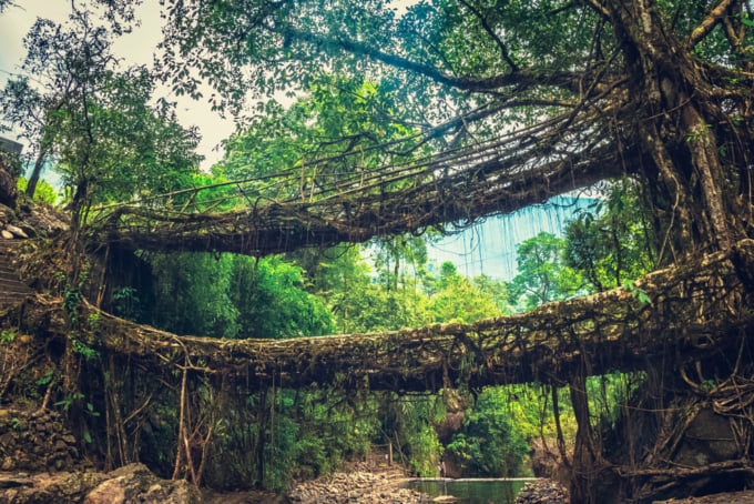 世界で最も雨の多い地域の 1 つとして知られるチェラプンジは、メガラヤ州にある緑豊かで活気のある町です。その魅力は、山、洞窟、インドで最も落差の高いノーカリカイ滝、長さ 100 フィートの 2 階建ての生きた根の橋など、独特の地形の組み合わせによってさらに強化されています。