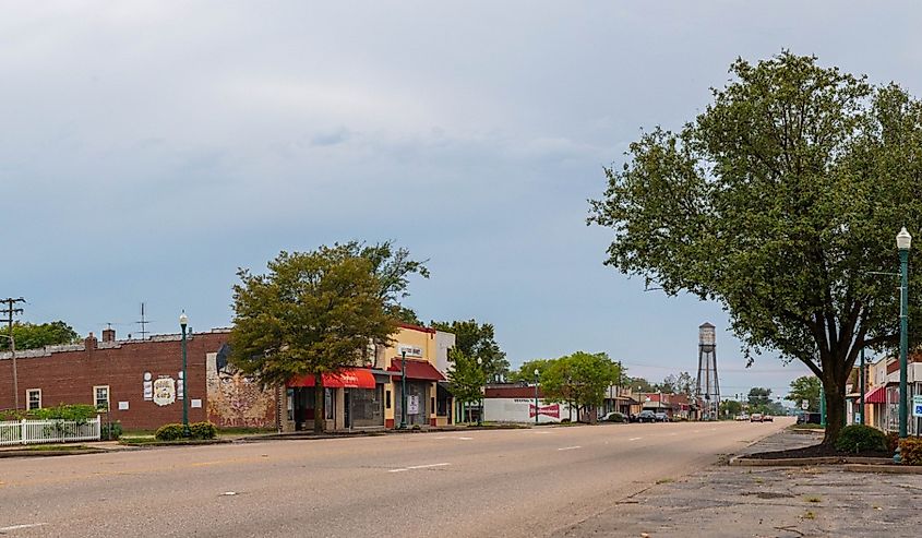 アーカンソー州テクサーカナのブロードストリートにある旧ビジネス地区。編集クレジット: Roberto Galan / Shutterstock.com