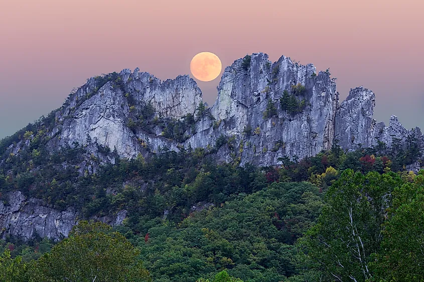 ウェストバージニア州セネカロックの上空で見られるスーパームーン。