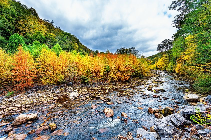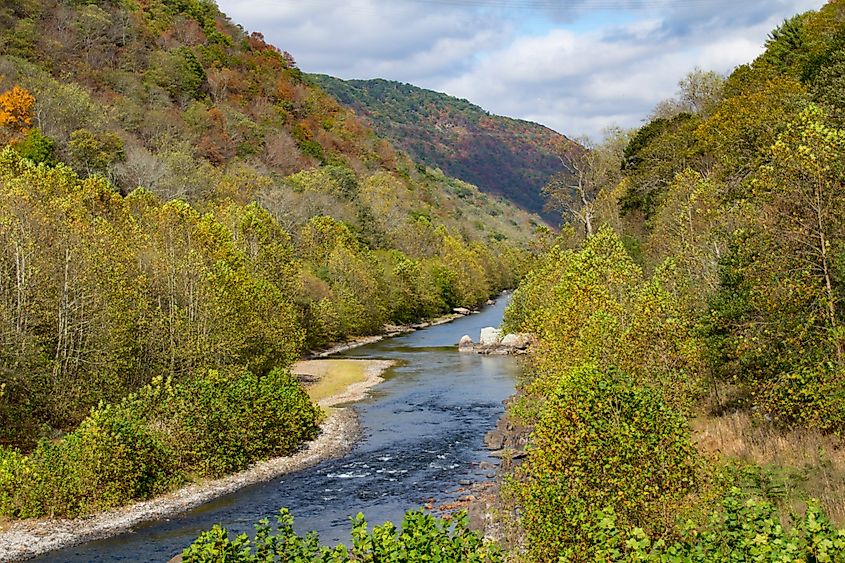 何百万年にもわたってニュー リバーによって削られてきたニュー リバー ゴージは、急峻な砂岩の崖、鬱蒼とした森林、そして世界最長の鋼製アーチ橋の 1 つであるニュー リバー ゴージ ブリッジを特徴とする劇的な峡谷です。川自体は、急流ラフティングに最適なスポットであり、クラス III から V の急流があり、冒険を求める人にスリル満点の体験を提供します。ハイカーは峡谷のパノラマビューを楽しめるエンドレス ウォール トレイルなどの風光明媚なトレイルを探索でき、ロック クライマーは困難な砂岩の壁に挑戦できます。紅葉が風景を赤、オレンジ、黄色の鮮やかな海に変える秋は特に壮観です。