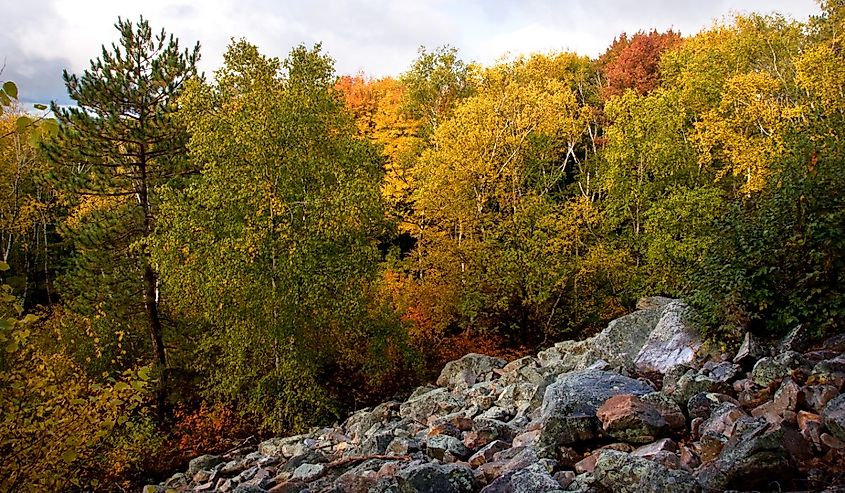 ウィスコンシン州デビルズレイクの森の中からのショット。