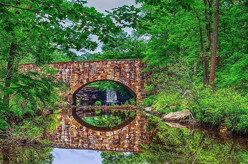 アーカンソー州ラッセルビル近くのプティ・ジャン州立公園にある風光明媚なデイビス橋。