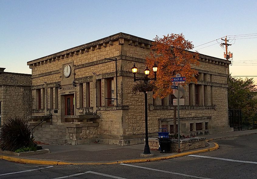 マニトバ州ストーンウォールにあるストーンウォールドミニオン郵便局。画像クレジットRockyroller、CC by-sa 4.0、 経由ウィキメディアコモンズ