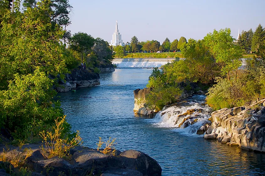 アイダホ州アイダホフォールズの神殿につながるスネーク川。