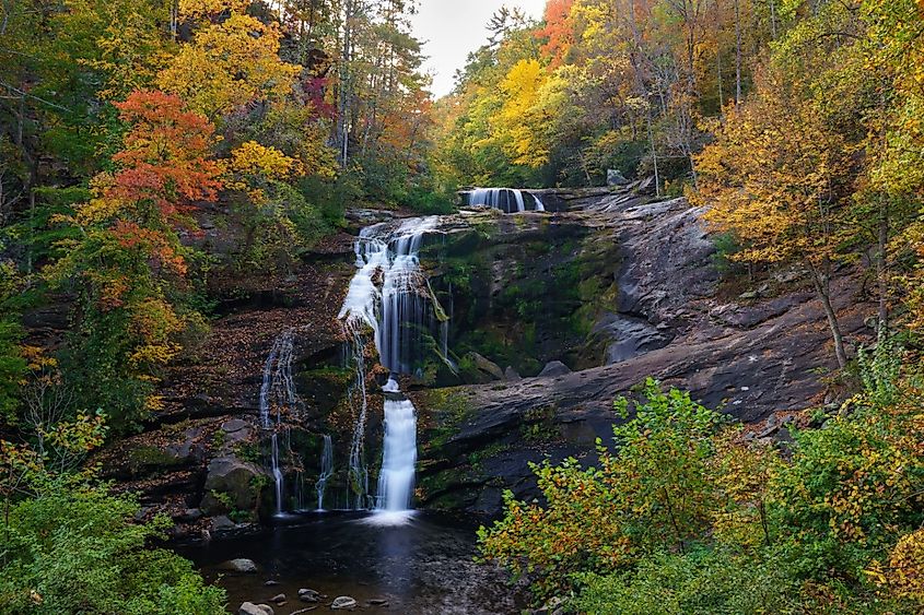 ボールド リバー滝、テネシー州チェロキー国有林、テリコ平原の秋。