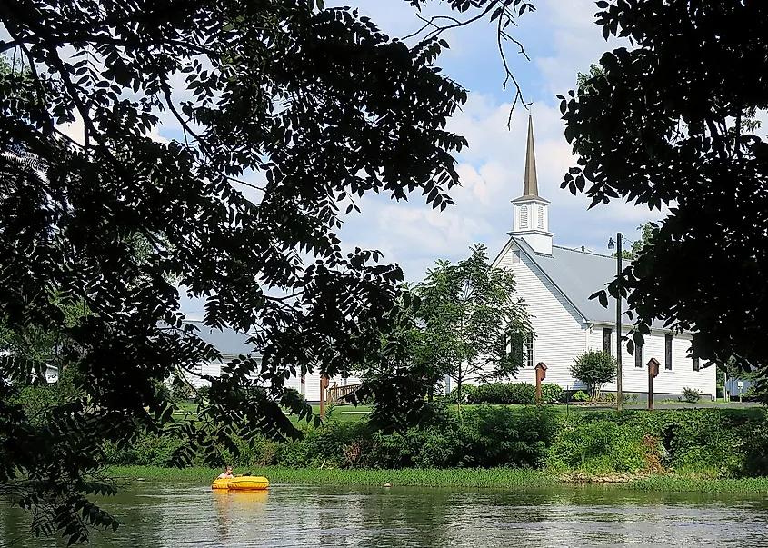 タウンゼントは、グレート スモーキー山脈国立公園に隣接する唯一の町で、ネオンサインを禁止しています。ストリップ モール、ゴーカート、チェーン レストランはありません。代わりに、「スモーキーズの平和な一面」として自らを売り出しており、その名に恥じません。リトルリバーが町の中心を流れており、ほとんどの企業は川に直接戻っています。夏の朝には、リバー ラットのような地元の服飾店がインナーチューブを配って、ゲストを上流に送り、フロートで町に戻ります。全長 9 マイルのタウンゼント ヒストリカル トレイルは高速道路と並行して走っており、教会、農場、古い石臼の前を部分的に歩いたり自転車に乗ったりすることができます。
