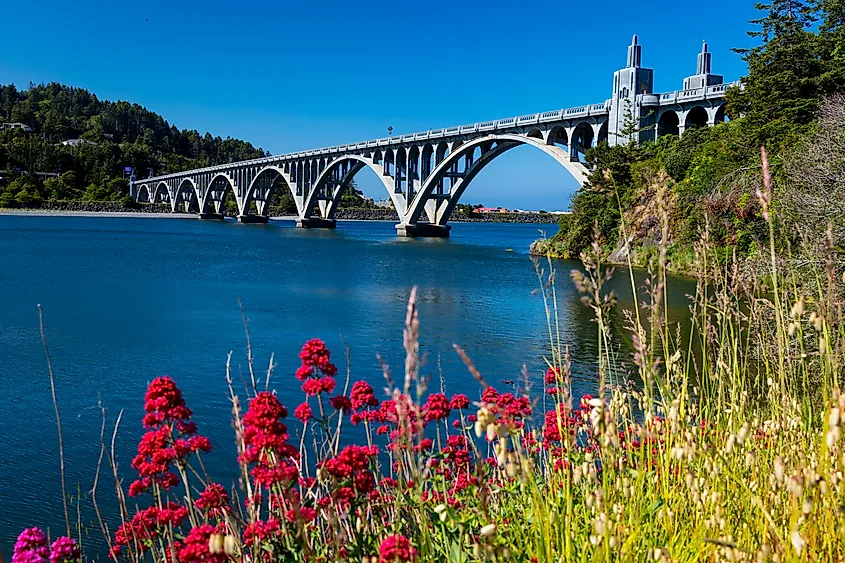 オレゴン州ゴールドビーチのローグリバーブリッジとしても知られるアイザックリーパターソンブリッジ。