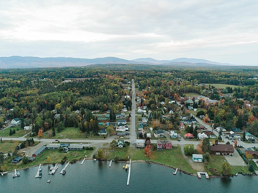 メイン州レンジリーの空撮。