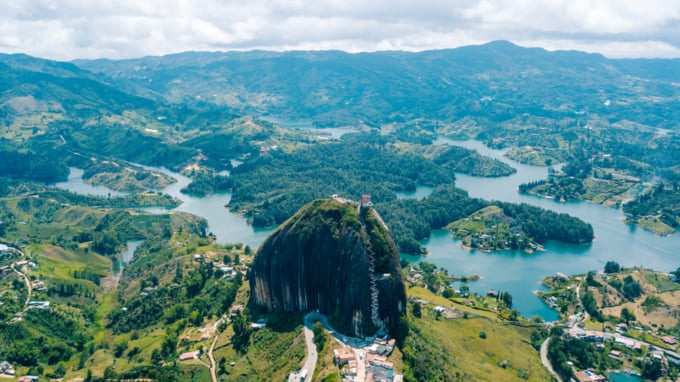 コロンビアのグアタペとエルペニョールの町にまたがるのは、グアタペの岩として知られる巨大な岩です。かつてこの地域に住んでいたタミーズインディアンによって崇拝されていた岩は、現在は国定記念碑です。岩の側面の亀裂に組み込まれた650のステップは、周辺地域のパノラマの景色が単に魅惑的な完璧な視聴場所に連れて行きます。