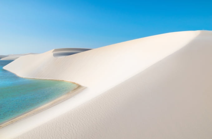 パーク・ナシオナル・ドス・レンソワ・マランハンスへの訪問は、あなたが夢見ているのか目覚めているのかを疑問視させるでしょう。ろ過された水の透明なプールが点在する、波状の白い砂丘の数マイルは、オフロード車両または徒歩で横断することができるこの壮大な景観を特徴づけています。後者は、おそらく砂丘を上下に走り、エメラルドグリーンウォーターのさわやかな涼しいプールに飛び込んで、できないまで何度も何度も飛び込むことができます!