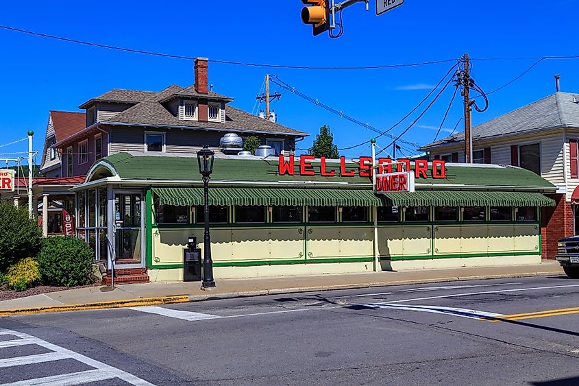 ウェルズボロ ダイナーは、ペンシルバニア州ウェルズボロの国道 6 号線のランドマークです。画像クレジット:George Sheldon、Shutterstock経由