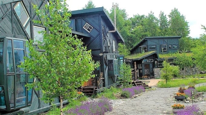 『北の国から2002結本』に登場した家です。ここには合計4軒の家が建てられました。 「ジュンとユキの家」は、完全に廃バスを利用した非常に複雑な構造となっている。ゴンドラを利用した家もあり、ユニークな建物がたくさんあります。