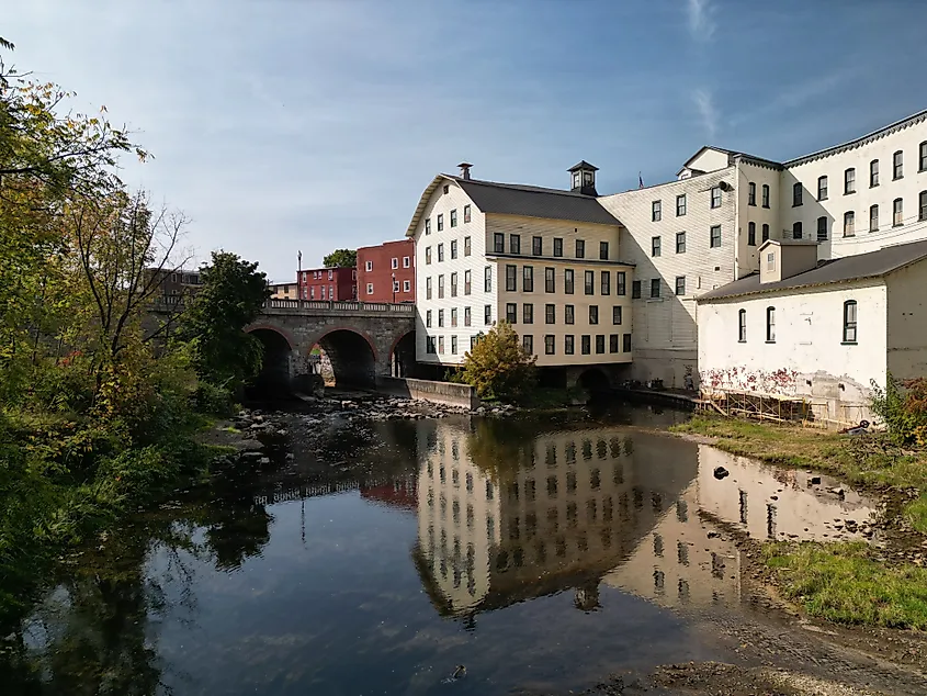 ニューヨーク州ペンヤンの歴史工場の運河の眺め。