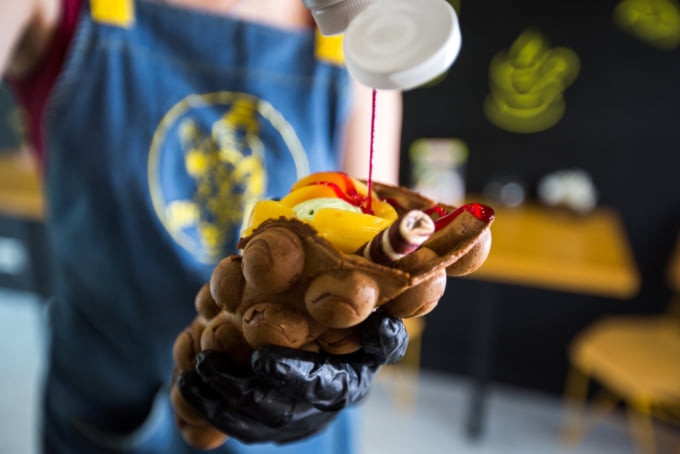 これらのふくらんでいるサクサクしたスナックは、香港で最も愛されている屋台の1つです。伝説によれば、卵パフとしても知られるマルチセルのワッフルは、もともとホーカーが販売するために壊れていることを意図していたということです。最近では、卵のワッフルが香港全体にあり、緑茶、チョコレート、LAモードなどのさまざまなフレーバーがあります。