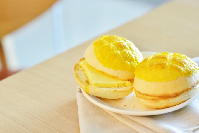 パイナップルパンまたはパイナップルパンは、カリカリのクッキーシェルをトッピングした甘くてシンプルな生地で作られています。焼くときのクッキー層の自然な崩壊は、パイナップルの皮に似た外観を作成するため、「パイナップルパン」という名前です。スナックは、ベーカリーズ、ダイパイドン(ストリートベンダー)、香港全体のチャチャーンテンで見つかります。