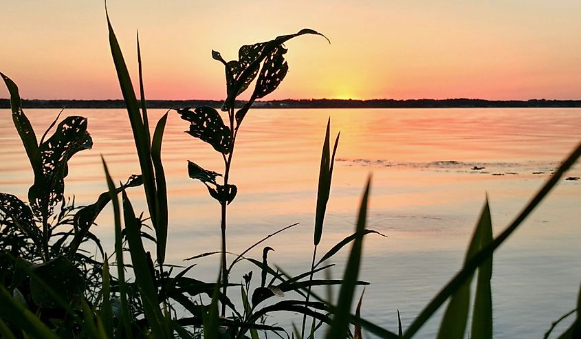 イリノイ州ナウブーからの日没時のミシシッピ川。