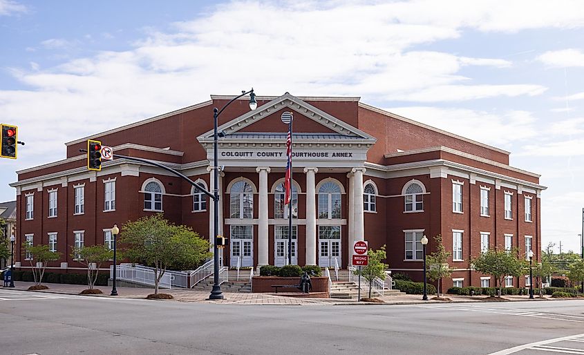 約15,000人の住民の人口がいるモールトリーは、その美しいダウンタウン地区で知られています。町の中心にある1902年に建てられた印象的な白い構造であるモールトリーのコルキット郡裁判所は、ジョージア州で最も美しい裁判所と名付けられ、1980年に国立歴史的な場所に追加されました。